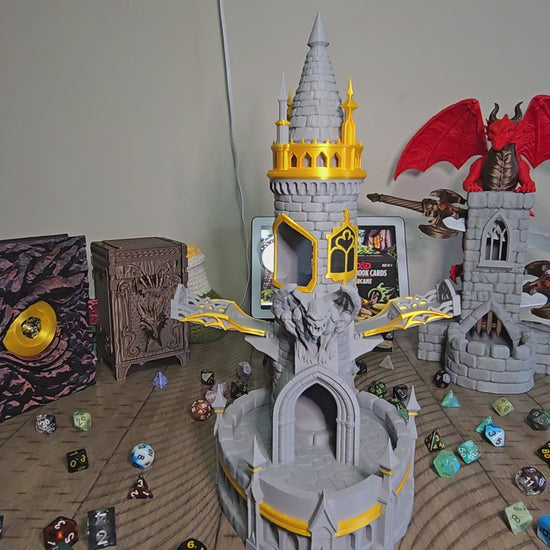 Meet Gargoyles Roost Mechanical Dice Tower, the 3D-printed dice tower that brings gothic flair to every roll. Simply place your dice on the bridge, give the tower a satisfying twist, and let gravity do the magic as they tumble out through the gateway below. Whether you're commanding armies in your favorite tabletop game or just love the theatrical drama of a good dice roll, this intricately crafted piece delivers both function and fantasy. A must-have for players who refuse to let their dice rolls be boring.
