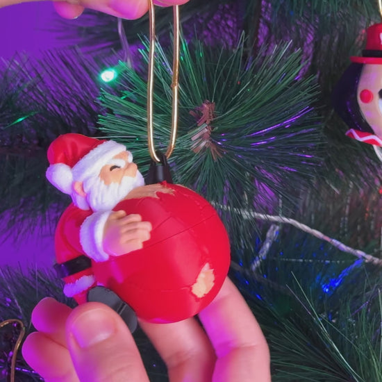 Naughty Claus- Santa's having a meltdown—this wickedly funny 3D-printed ornament captures the moment he weaponizes a broken bauble to unleash festive destruction on everything around him